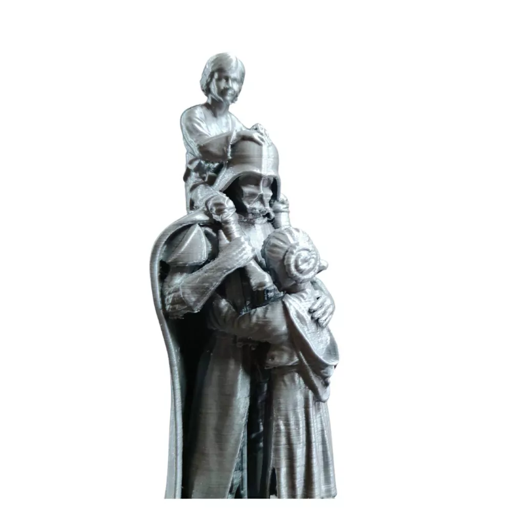 Darth Vader, la Princesa Leia y Luke abrazados, padre e hijos. De 15cm de altura (escala 1/16), color plata.