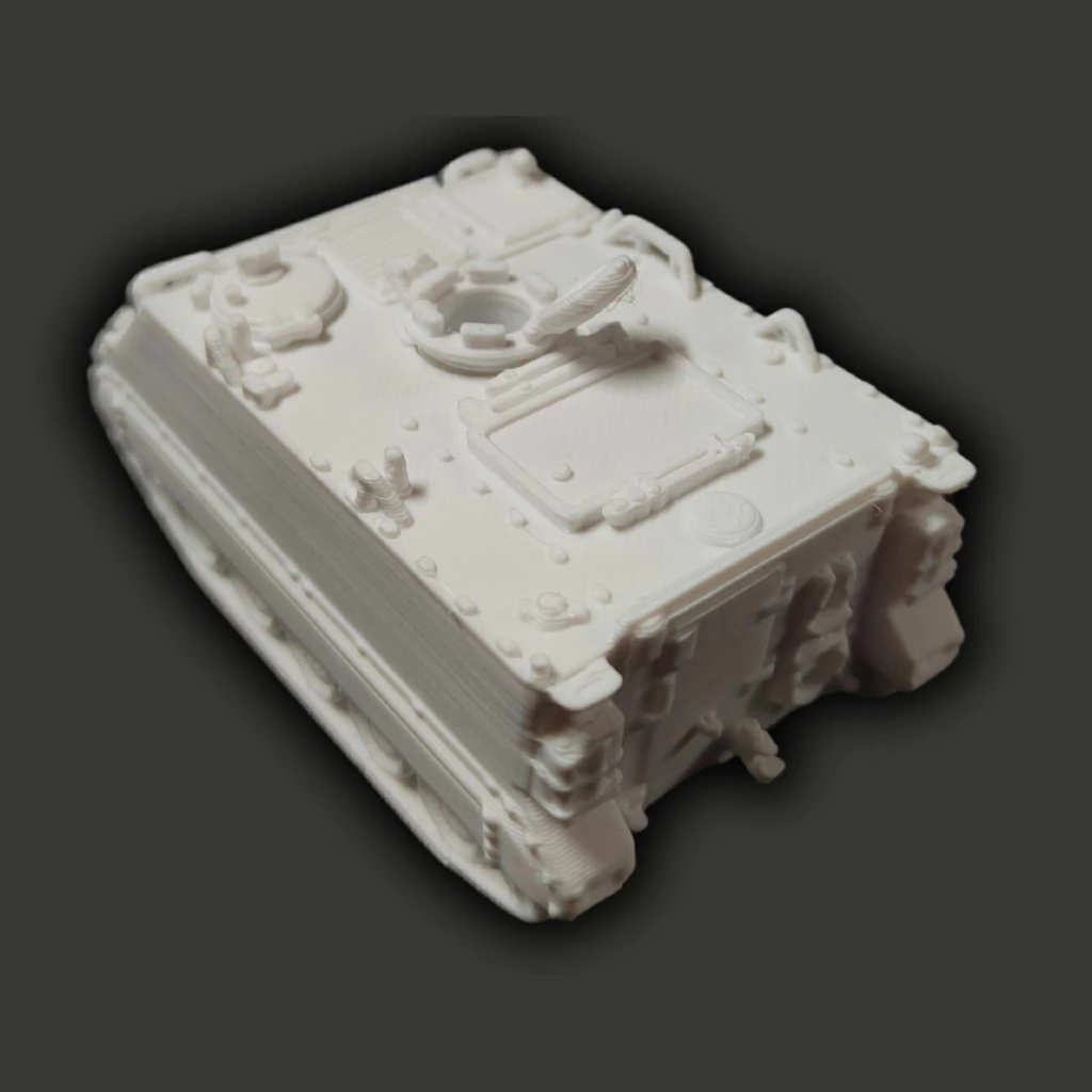 Tanque de guerra AML Panhard, del Ejercito Argentino, en escala 1/16, color blanco, listo para armar y pintar.\n\n\n\nLa publicación es solo por el tanque, en la ultima imagen pueden verse unos tanquistas, pero es solo a modo ilustrativo. Se venden por separado.